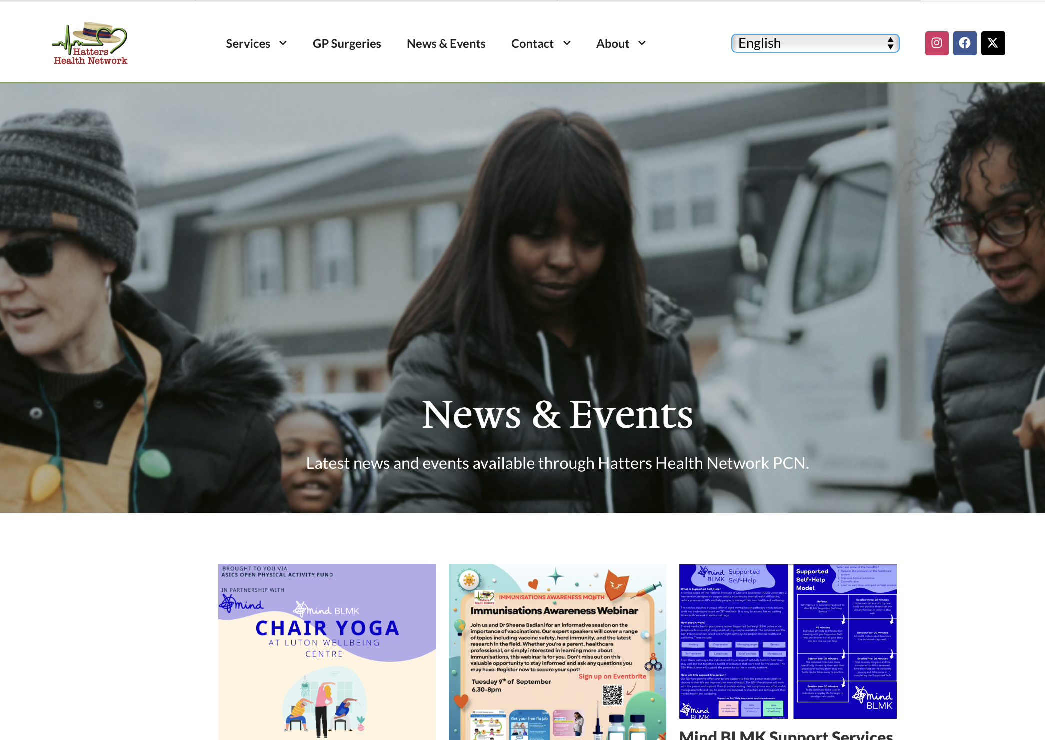 We redesigned the Hatters Health Network website to make essential healthcare information easier to find and more accessible for local communities. Working closely with staff and patients, we simplified the layout, improved navigation, strengthened mobile usability and introduced multilingual translation and accessibility tools. We also added a basic automated chat function and feedback options to reduce staff workload. The result is a clearer, more inclusive platform that supports patients and carers to access primary care confidently.